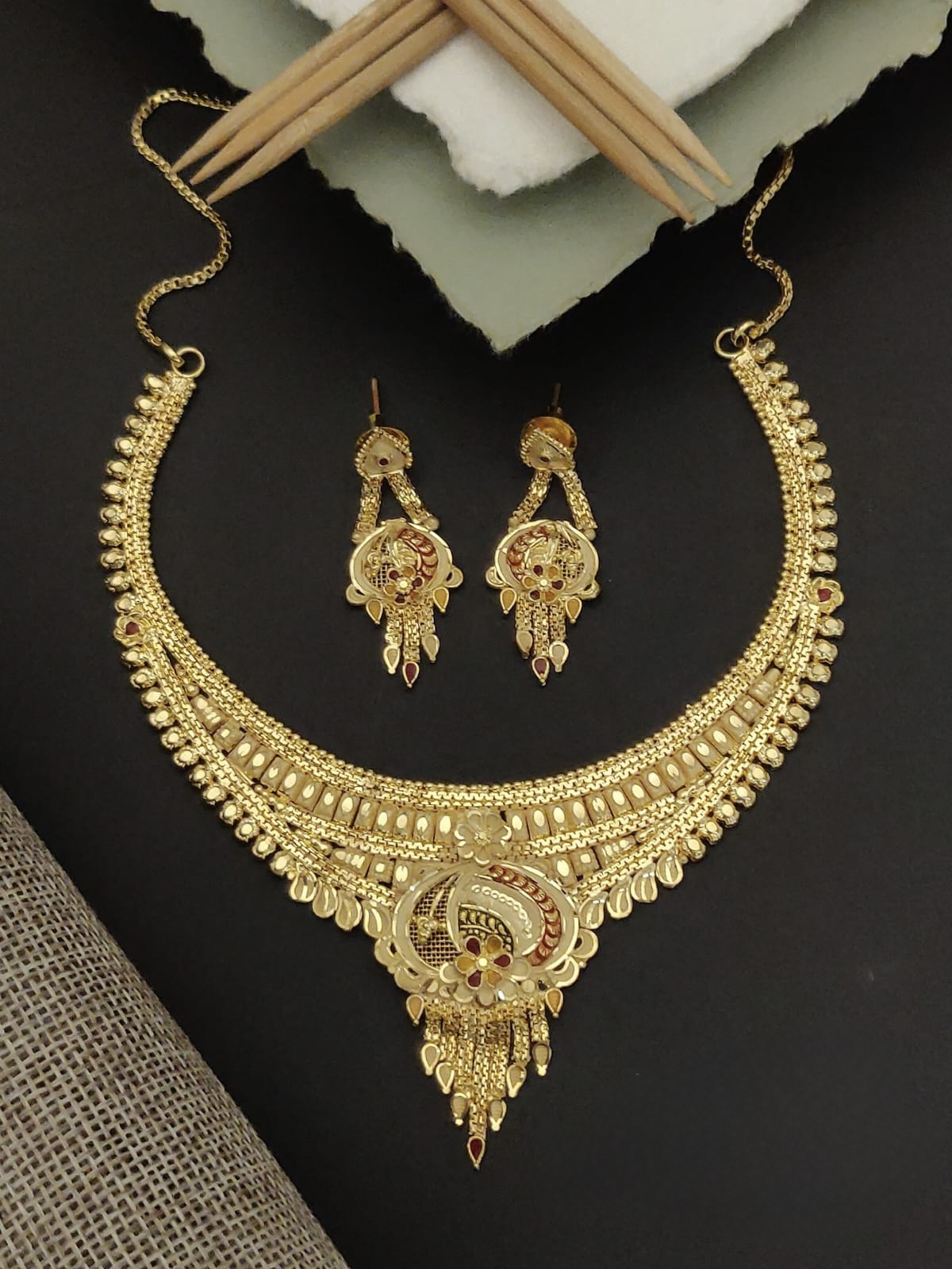 | Product Name | Mango with Round Shape Gold Necklace Set |