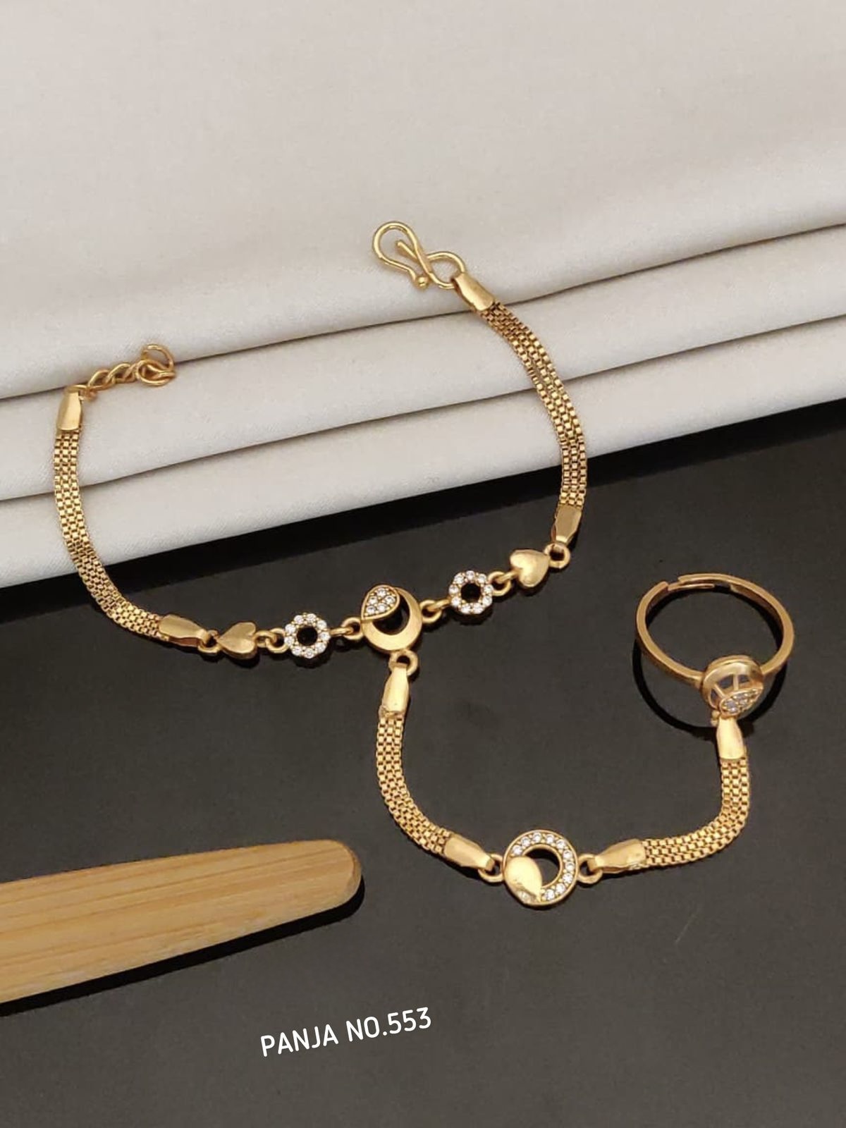 | Product Name | Traditional Gold Plated Pearl Hath Punja Bracelet with Ring for Women |